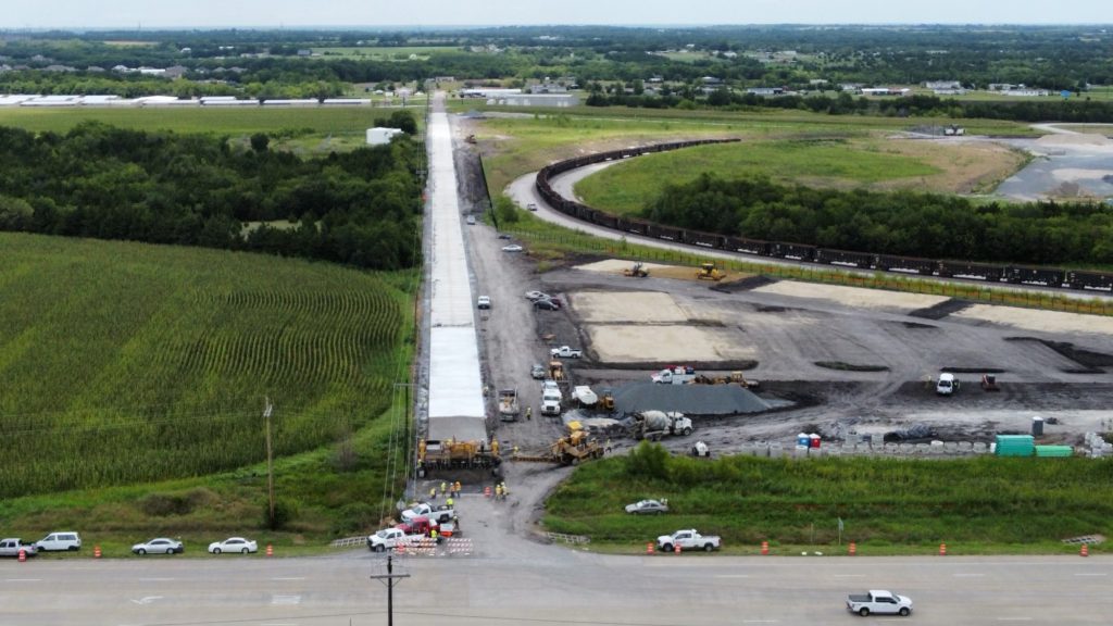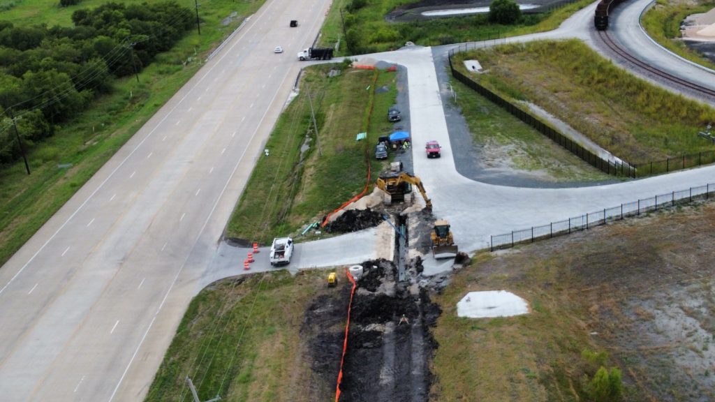 We have completed all off and on-site underground utilities including 1800 feet of off-site sewer along Highway 380 and water to the site. Martin Marietta was extremely easy to work with as we had to cut and replace two 18″ thick concrete drives that accessed their operations plant.